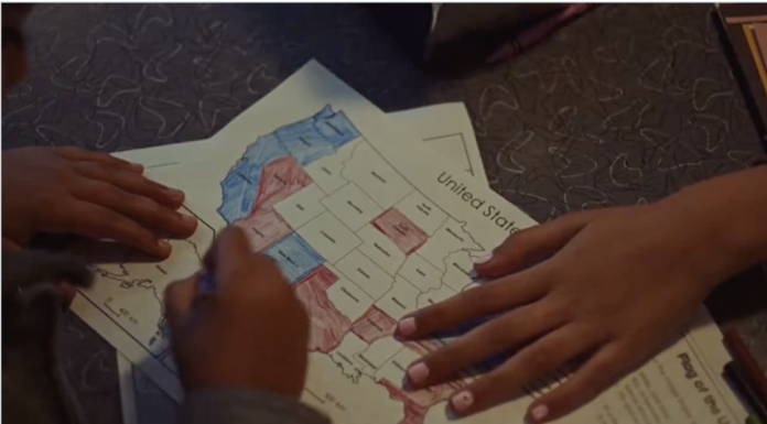 The ad features images of Americans of all backgrounds — learning in classrooms, working job sites, celebrating with family — set to the brassy refrain of arguably the most misunderstood patriotic anthem ever recorded. It’s airing nationally starting on Morning Joe.