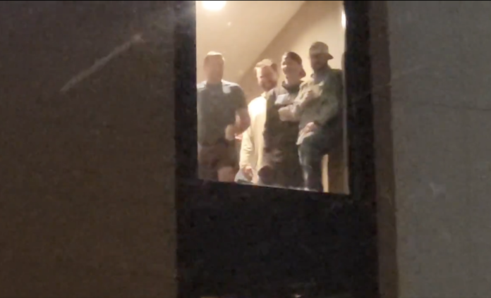 Federal agents staying at the hotel were laughing at the crowd of protesters from a third-floor window when one of them decided to display his backside to the distressed demonstrators below.