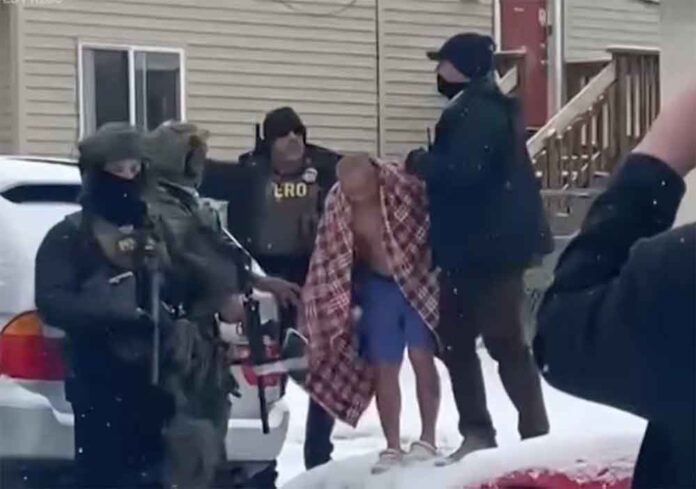 Federal immigration agents forced open a door, pointed guns at a family, and dragged a U.S. citizen out of his Minnesota home in nothing but underwear and sandals—in subfreezing temperatures—without ever presenting a warrant.