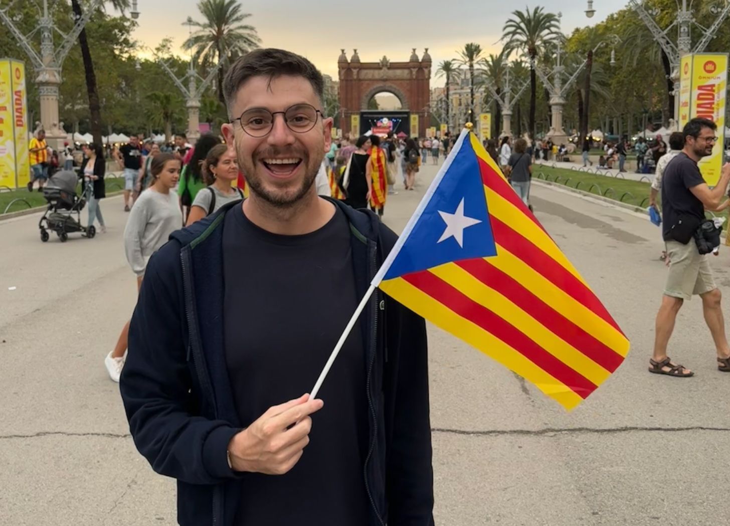 Me with the Catalan Independence flag in front of Barcelona’s Arc de Triomf.