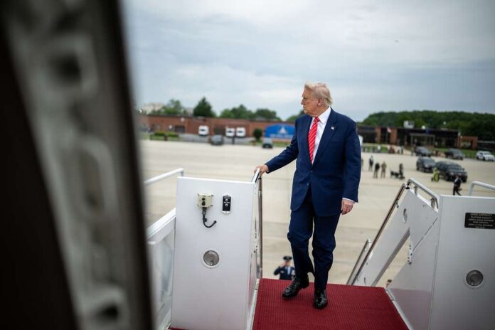 Appearing on Dan Bongino’s relaunched podcast, the president explained his cautious approach by pointing to Biden’s infamous triple-stumble on the Air Force One steps back in March 2021. “Ever noticed how slowly I am these days? Nice and slowly, I’m not looking to set any records,” Trump said. “You don’t wanna go down. Could happen, could happen. But it can’t happen three times in one shot, OK?”