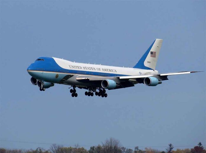OF COURSE: Leavitt couldn’t resist using the incident to plug Trump’s controversial gift from Qatar’s ruling family—a luxury Boeing 747-8 that drew intense scrutiny when it was presented in 2025. “The Qatari jet was sounding ‘much better’ at that moment,” she quipped to reporters. Nothing says “America First” like joking about accepting planes from foreign monarchies.