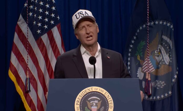 “Put the whole thing in the trash and start fresh,” SNL’s Trump gloated. “We love that for them.”